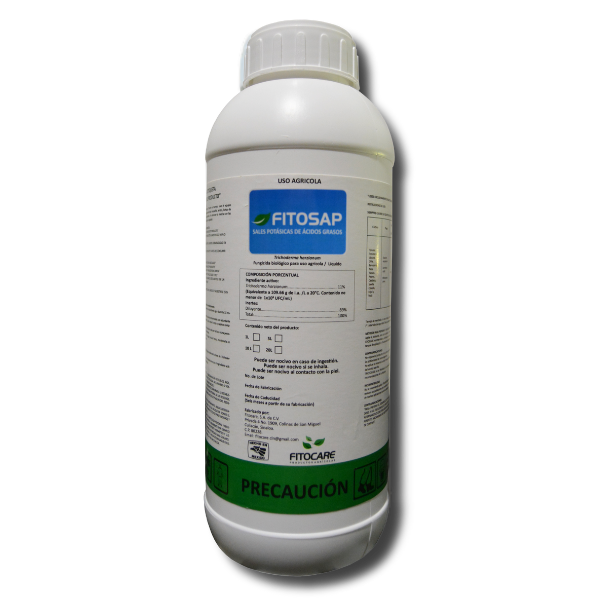 FitoSap es un insecticida orgánico líquido a base de Sales Potásicas de Ácidos Grasos (30%), diseñado para el control de insectos de cuerpo blando como mosquita blanca, ácaros, trips y pulgón.